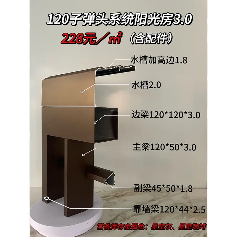 Формальное ядро: верхняя поверхность спроектирована с использованием обтекаемой дуги головки пули, дуга рассчитана с точностью (общий радиус кривизны 2 - 4 м), как и резервированная головка пули, полная кинетической чувствительности, более чем в 3 раза сильнее, чем визуальное натяжение традиционной плоской крыши солнечной комнаты.